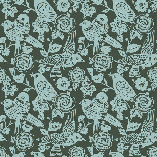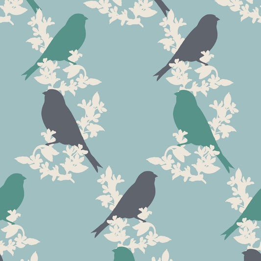 AVIARY WALLPAPER LARGE AQUA SAMPLE