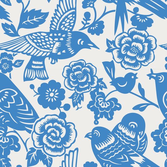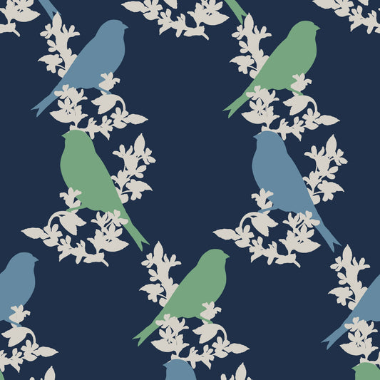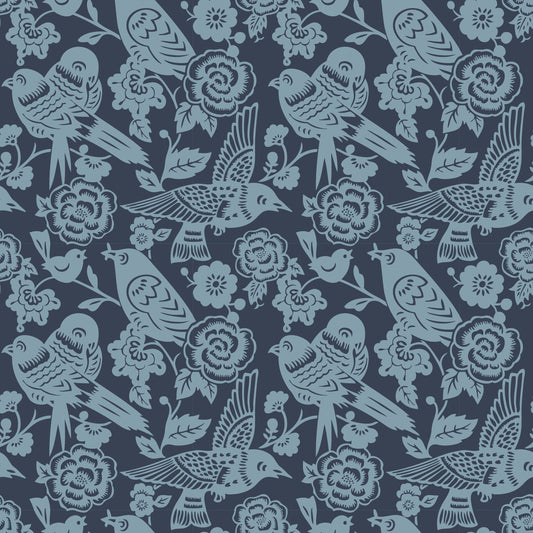 AVIARY WALLPAPER SMALL INDIGO SAMPLE