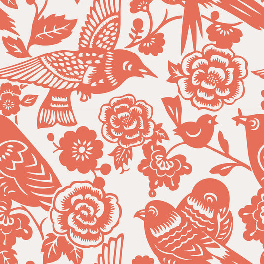 AVIARY WALLPAPER LARGE PERSIMMON SAMPLE