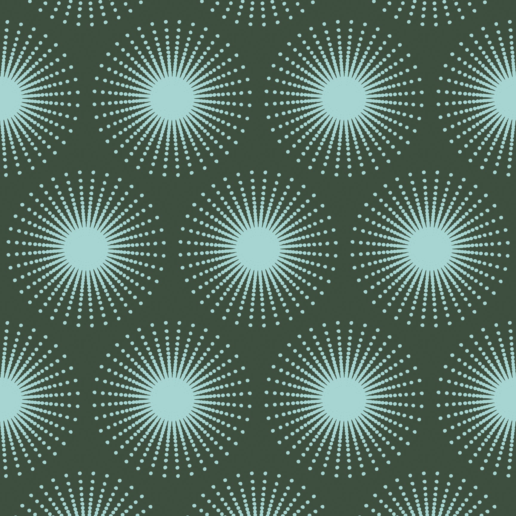 Liven up your space with our STARBURST WALLPAPER KELP - a galaxy of geometric bursts that adds personality to your mid-century modern interior. Clean and modern with a playful twist!